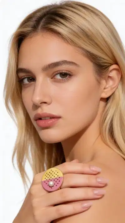 Make a bold statement with this captivating handcrafted ring that transforms your everyday look into something extraordinary. This eye-catching piece features a distinctive circular design with vibrant enamel detailing in playful pink and sunny yellow tones, creating a modern artistic expression that speaks to your unique style.